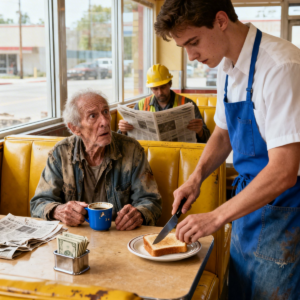 “A Single Dad Showed Kindness to an Old Man — Then Four Bodyguards Walked In” Part 1: The Man in the Corner Booth…