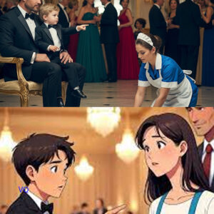 The chandeliers hung like frozen constellations above the grand ballroom, casting shimmering light across crystal glasses, golden cutlery, and polished marble floors. The…