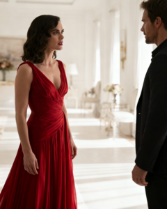 Her hand moved instinctively to cover the damage. Spine straightened. Chin lifted. She started toward the exit, walking like nothing had happened, except every eye in the ballroom followed her.