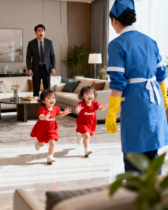 The woman he had hired three weeks earlier after a quiet recommendation from a local agency. She was young, soft-spoken, efficient. He barely noticed her beyond her uniform and punctuality.