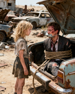 From behind a heap of scrap metal, Lily watched them drag Ethan from the trunk.