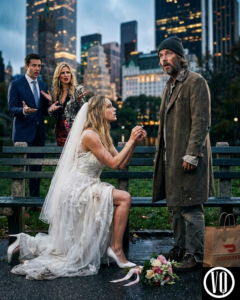 Harper threw the lunch bag at him and stormed out. Blinded by tears, she wandered into Central Park. She saw a man sitting on a bench, wearing tattered clothes, looking at the ground.