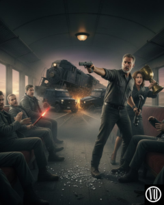 The ghost train didn’t have lights. It was a blackened hulk of iron and rust, dragging a string of heavy freight cars. It roared past the passenger train, kicking up a blinding wall of sand, gravel, and tumbleweeds. The debris hit the gunmen like shrapnel.