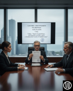 “Mr. Reynolds explicitly stated that Linda and Richard Reynolds are to receive nothing. He cited—and I quote—’a twenty-year history of financial parasitism, documented coercion, and a fundamental breach of familial trust.’ He also included the police report from the night Emily was dropped off at his home, noting that no contact was attempted by the parents for fifteen years.”