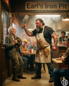 The old man stood there, stunned. He touched the money in his pocket. He looked at Earl. He saw past the tattoos, the scar, and the cleaver. He saw the kindness that was hiding behind the wall of muscle.