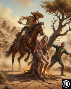 Villa’s horse leaped over the burning brush. In one fluid motion, the General leaned down and swung his heavy machete, slicing through the ropes and wire holding the old man. The Apache slumped into Villa’s arms as the Dorados swept through the plaza like a scythe.