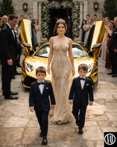 But she wasn’t alone. She reached back into the car and lifted out two small boys. They were dressed in miniature versions of the same midnight-blue velvet tuxedo Mark was wearing.