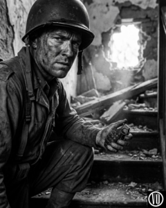 “Sarge,” Private Kowalski whispered, his face smeared with grease and fear. “Movement. Two-story structure. Eleven o’clock.”