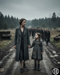 “Mutti!” Elara dropped to her knees. She grabbed her mother’s shoulders, shaking her. This was the nightmare. This was the thing Elara had feared more than the guards, more than the cold. If you stopped, you were left behind. And if you were left behind, you disappeared.