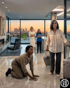 My Savannah. My brilliant, artistic girl who held a degree in architecture and a future as bright as Manhattan’s skyline, was on her hands and knees. Her face was smudged, her hands raw and red, trembling violently as she scrubbed a microscopic smear from the pristine white floor with a stained rag. Standing over her, dressed in tailored ivory silk, was her mother-in-law, Veronica Sutton—a woman whose wealth was as threadbare as her morality. Veronica looked from Savannah’s pleading face to the open door where I stood, recognizing me instantly as the mother from “the wrong side of the tracks.” Veronica’s perfectly sculpted lips curled into a poisonous smile, and she delivered the line that became the trigger for my life’s most aggressive acquisition: “That pathetic girl is only fit for two things: keeping our floors clean, and shutting up. She is a decorator’s failure and a husband’s burden.” I froze. That instant, the humiliation I saw in Savannah’s eyes—the utter, resigned defeat—was a financial and emotional declaration of war. I realized that the $50 million I had earned over the last eight years was about to be put to its true, devastating purpose.