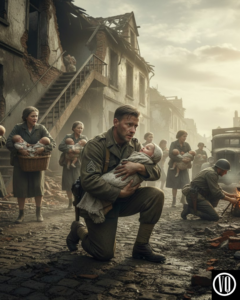 He turned to see Junior Kowalski, the kid from Nebraska, holding a baby in each arm, looking terrified. “Sarge, I don’t… I don’t know how to hold ‘em.”