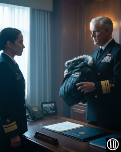 “You abandoned your post-flight route, stopped a government vehicle for a non-authorized civilian interaction, and handed over Navy-issued equipment—bearing your rank—to a civilian. You walked onto this base out of uniform.” He stood up, towering over the desk. “It’s a lapse in judgment. It’s a breach of protocol. It suggests you value sentiment over the chain of command.”