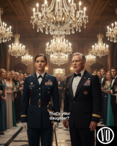 As I approached my father’s circle, a man in a crisp tuxedo—General Thomas Miller, a retired three-star who now sat on the board of a major aerospace firm—turned to see the commotion. He saw the uniform. He saw the stars.