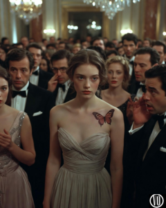 Her dress — technically borrowed — fit a little too snug across her shoulders. The silk wasn’t new; you could tell if you looked closely. But Lily stood straight anyway, chin lifted just enough to pretend the whispers didn’t reach her ears.