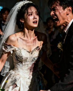 The guests erupted in a collective gasp, some women screaming in horror as they witnessed the unthinkable. Doña Consuelo rushed forward, her face a mask of horror and shame, begging her son to stop. But Alejandro, his eyes wild and unfocused, shoved his mother aside and advanced on his bride, grabbing her by the arms and shaking her violently.