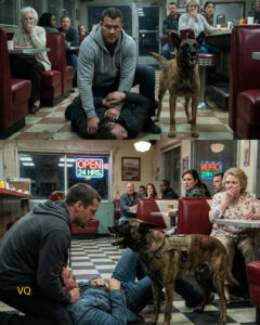 Just then, the bell above the door chimed. Javier Hale entered, his boots dusted from the road, a simple gray hoodie on his shoulders. At his side walked Titan, a Belgian Malinois with alert eyes and a body tense with anticipation. Javier had driven all night, hoping to surprise his mother and share a quiet breakfast, to hear her laughter over coffee. But as soon as he stepped inside, he sensed something was wrong.