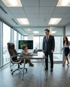 The Lou Enterprise Group was in chaos. Computers flashed red, systems were paralyzed, and security guards were running around like headless chickens. At the center of the storm, sitting calmly in the CEO’s massive leather chair, was a five-year-old boy named Chenchen.